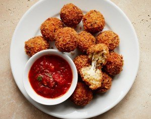 Arancini are Italian rice balls that are stuffed, coated with bread crumbs and deep fried, and are a staple of Sicilian cuisine. They have a meat sauce and mozzarella cheese filling and crunchy breadcrumb coating. Similar Italian rice balls are called sup