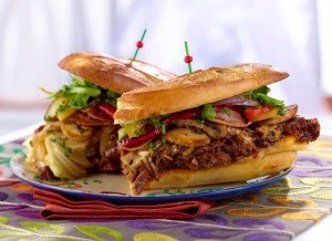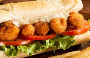 A po' boy is a traditional sandwich from Louisiana. It almost always consists of meat, which is usually roast beef or fried seafood, often shrimp, crawfish, fish, oysters or crab. The meat is served on New Orleans French bread, known for its crisp crust a